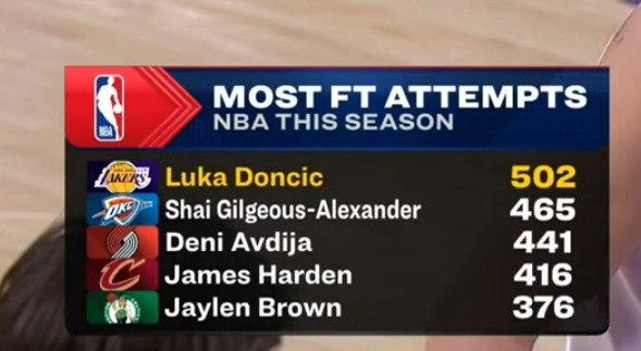 开云登录入口地址-东契奇本赛季罚球超500个联盟首人 亚历山大465个排第二&哈登第四