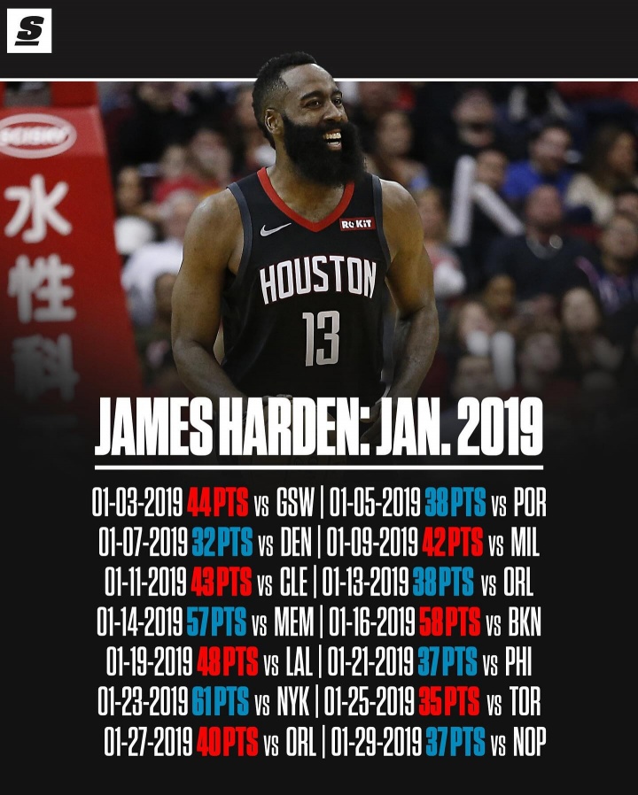 开云登录入口地址-场均44分9板8助!美媒重评哈登2019年1月:NBA历史级单月表现的巅峰之作