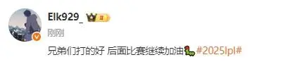 虎扑09月09日讯 2025LPL第三赛段季后赛BLG以3-1的比分战胜iG,挺进胜者组决赛。赛后,Elk发文:
